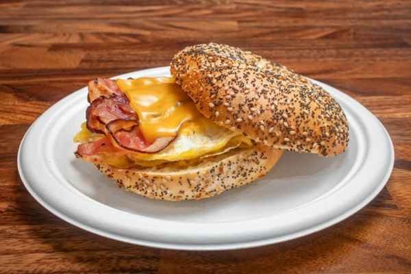 A satisfying bagel sandwich featuring crispy slices of bacon…